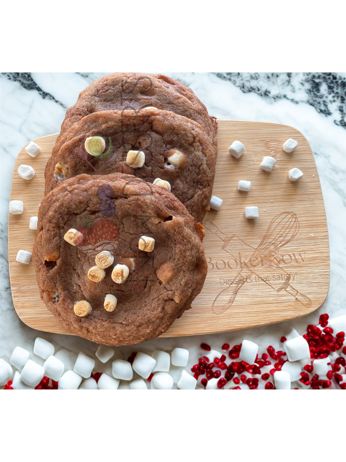 Want an experience in a cookie? Our Hot Cocoa Dream Cookie transforms the comforting ritual of hot chocolate into a richly decadent, utterly irresistible cookie. It’s dense, deeply cocoa-rich, and crafted for maximum flavor. It's the ultimate winter warm-up, requiring no mug and no stirring—just pure, concentrated hot chocolate bliss. Garnished with dehydrated marshmallows.